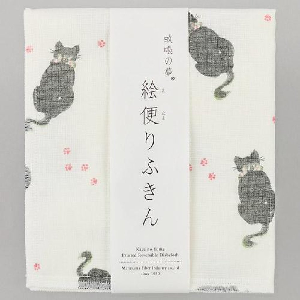 蚊帳の夢-日式小紗巾(黑貓) 35x40 (日本製)
