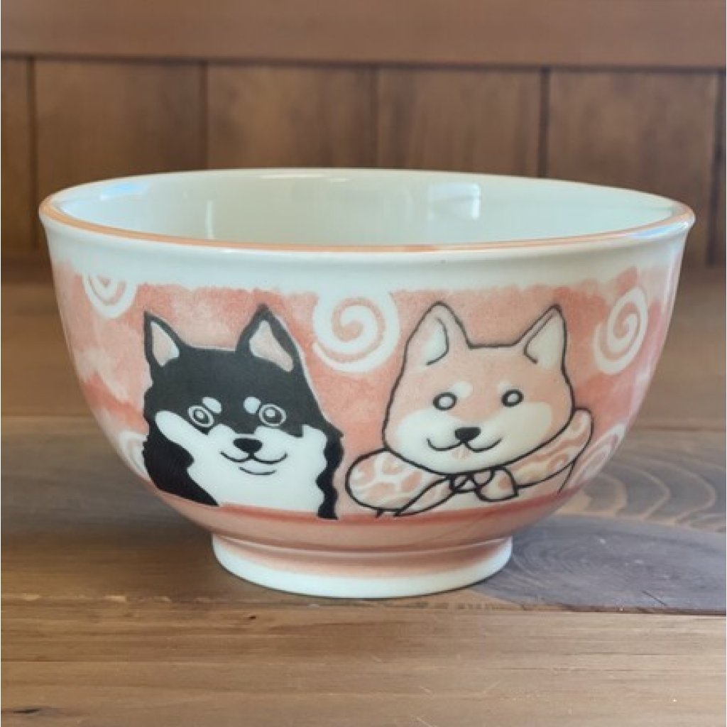 日式陶瓷柴犬瓦湯碗 13CM (粉紅) (日本製)