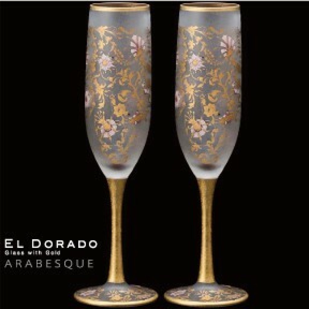 日本EL DORADO櫻花燙金香檳杯套裝 (2枚入) (日本製)