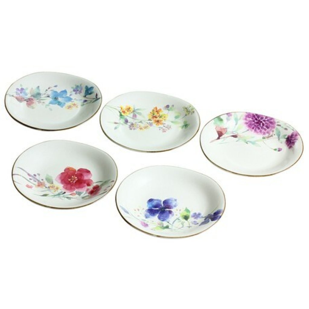 日本美濃燒花水彩瓦碟禮盒套裝 (5枚入) (日本製)