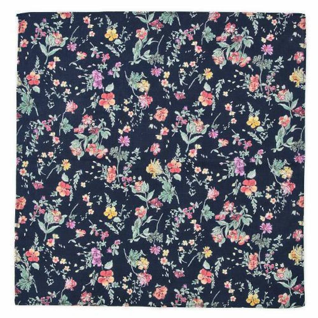 日式花花圖案手帕 (深藍色) 33x33 (日本製)