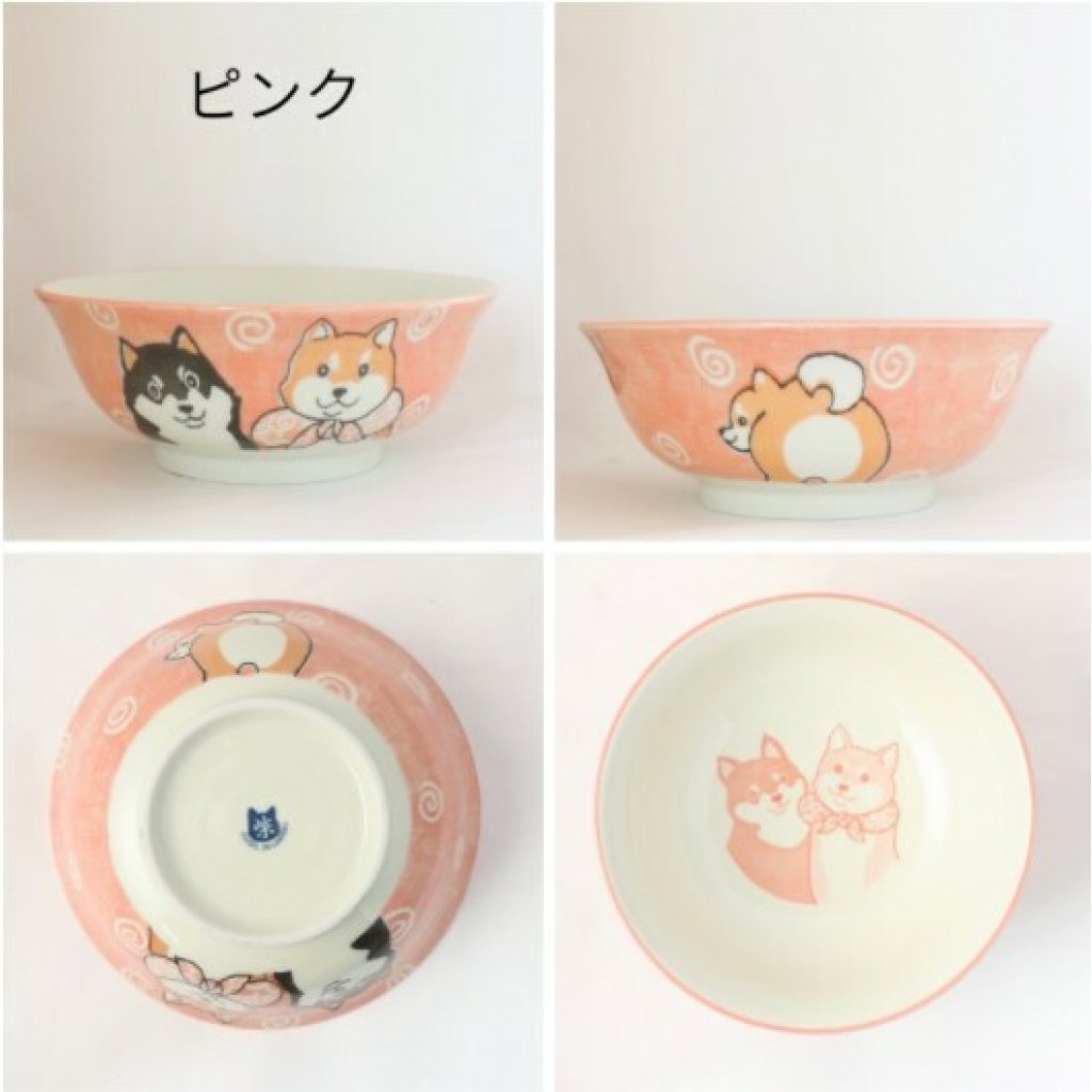 日式陶瓷柴犬瓦碗 20CM (粉紅) (日本製)