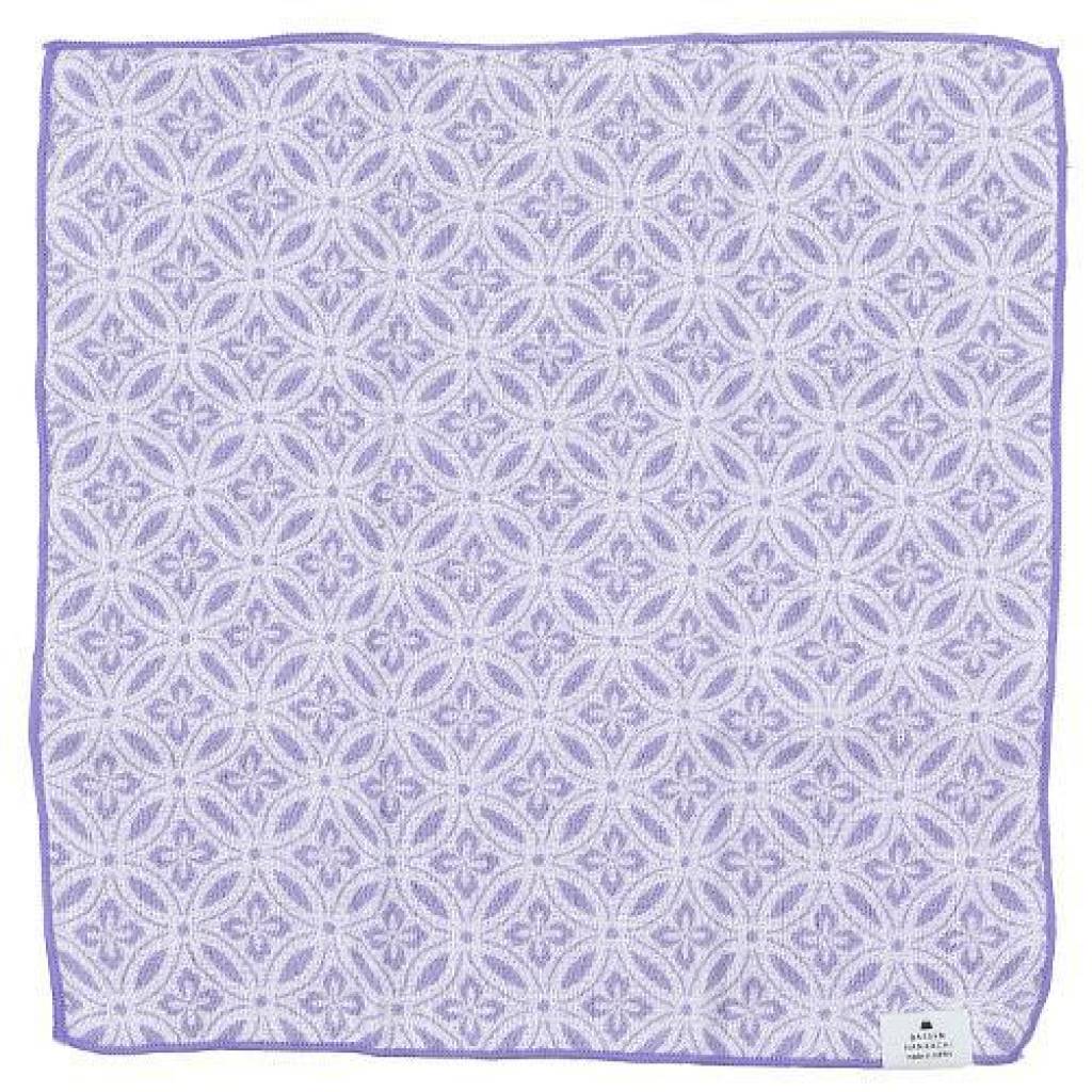 日式三層紗布抜染圖案方巾 (紫色) 28x28 (日本製)