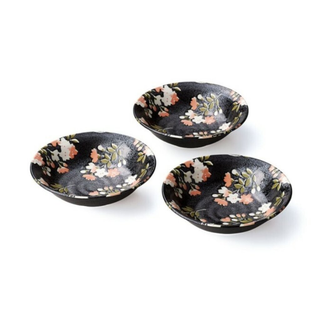 日本美濃燒宇野千代黑櫻花瓦碟套裝 (3枚入) (日本製)