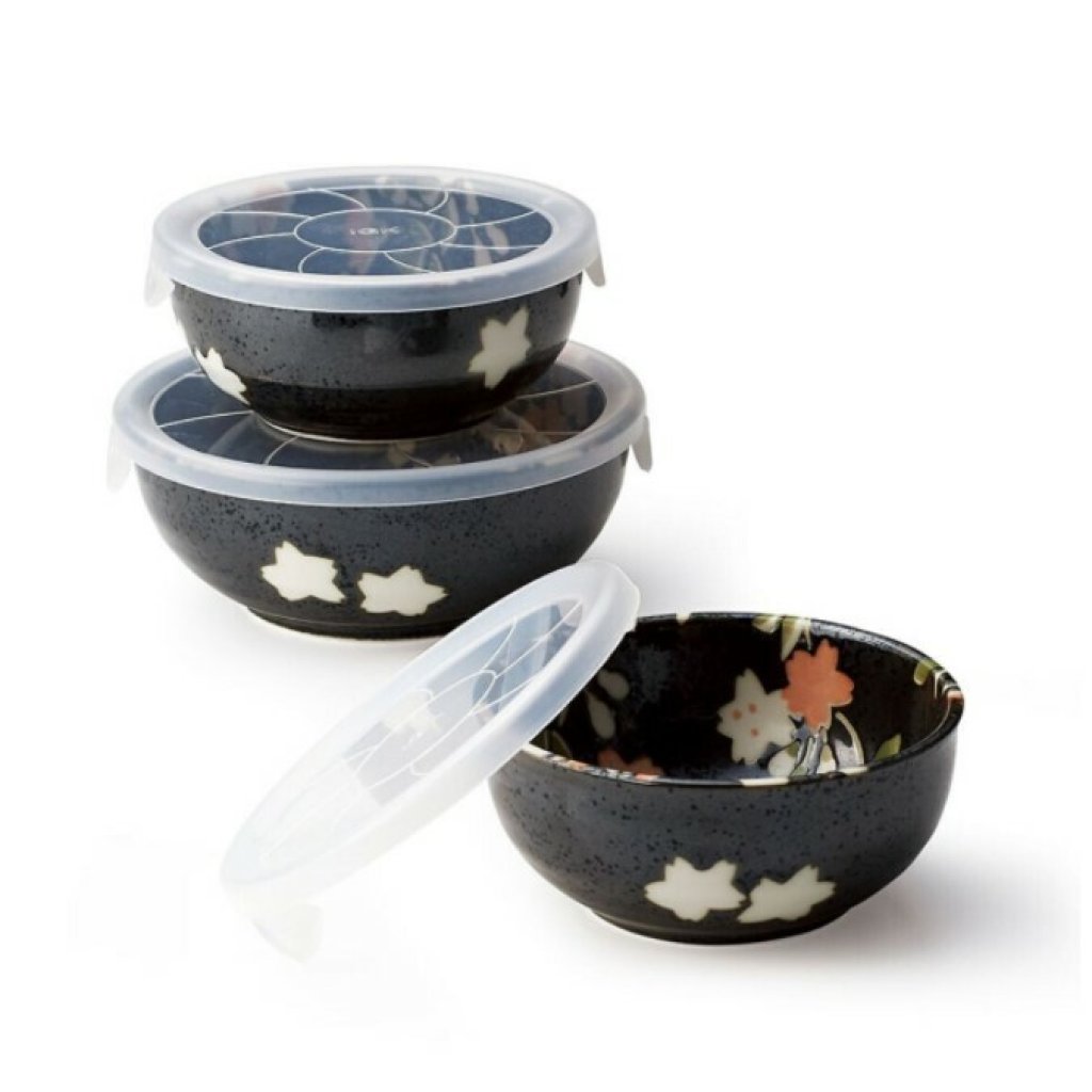 日本美濃燒宇野千代黑櫻花保鮮瓦碗套裝 (3枚入) (日本製)