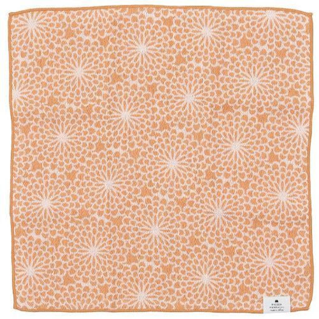 日式三層紗布抜染圖案方巾 (橙色) 28x28 (日本製)