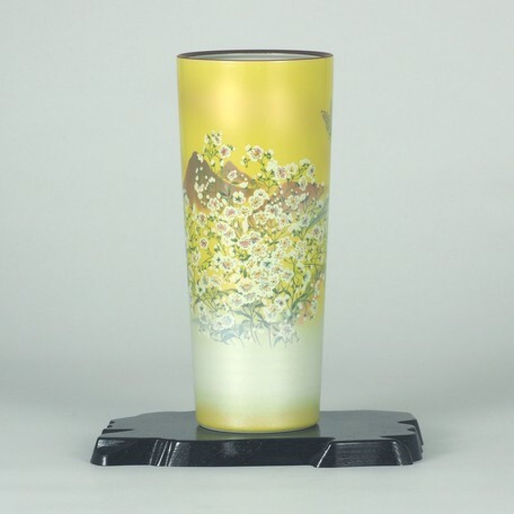 日本九谷燒陶瓷花樽 (金霞) (日本製)