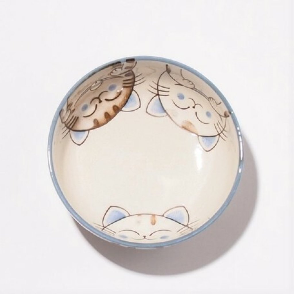 日本美濃焼招福貓瓦碗(粉藍) 13CM (日本製)