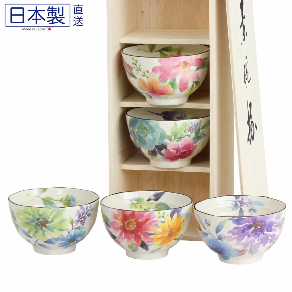 日本美濃燒HANA瓦碗禮盒套裝 (5枚入) (日本製)