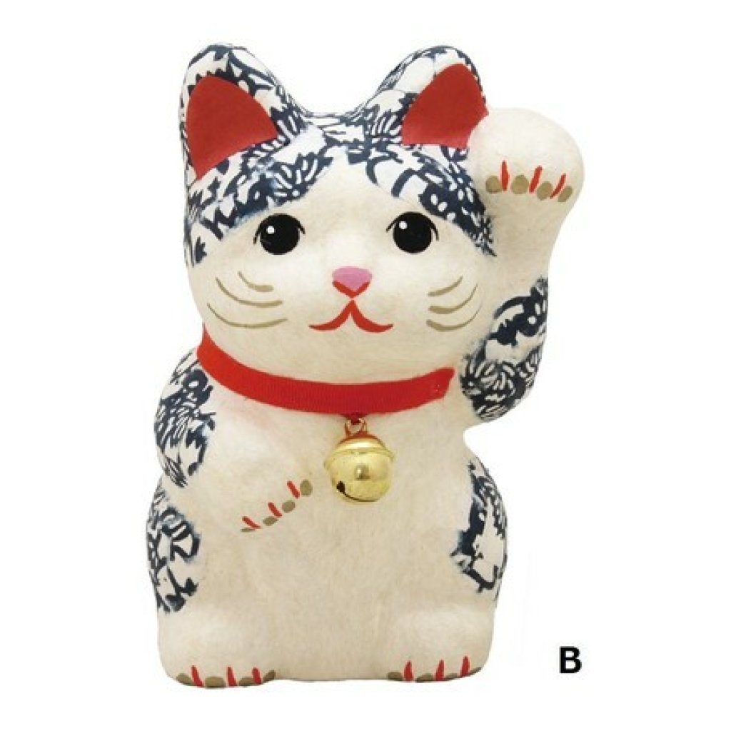日式彩繪和紙招財貓(青) (日本製)