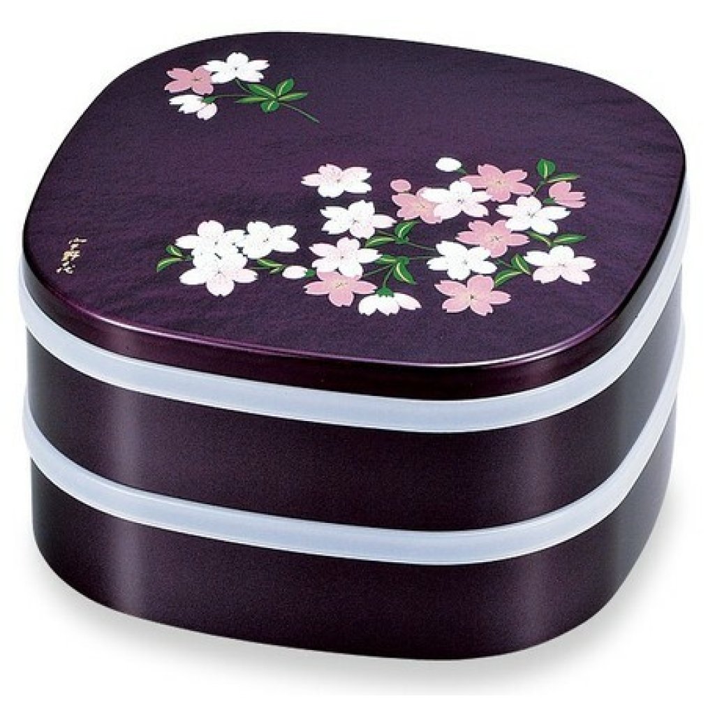 日式櫻花雙層傳統新年盒 (紫色) (日本製)