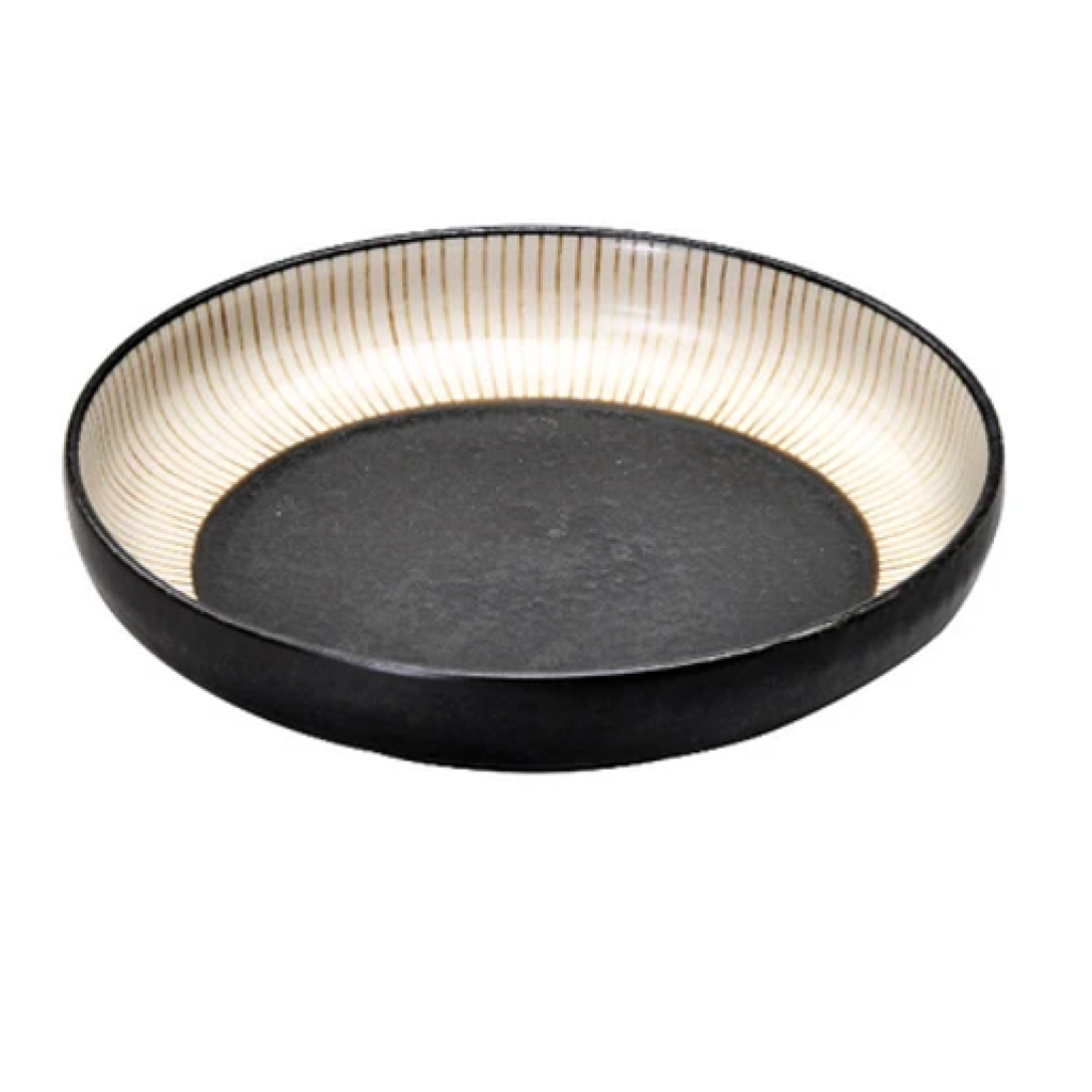 日式美濃燒WABI十草瓦碟(黑) 20CM (日本製)