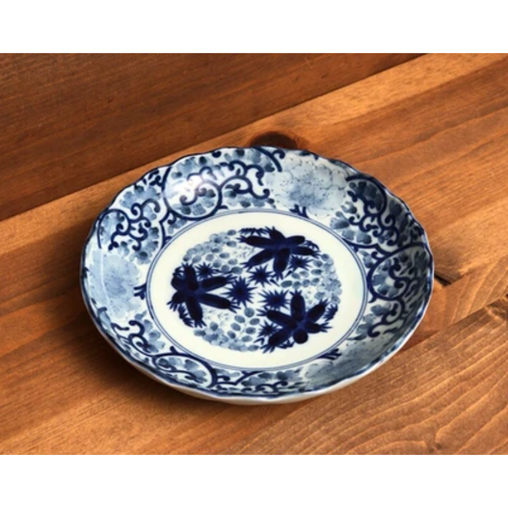 日式陶瓷藍染唐草瓦碟 19CM (日本製)