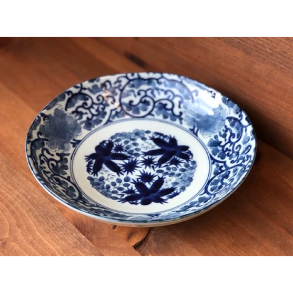 日式陶瓷藍染唐草瓦碟 21CM (日本製)