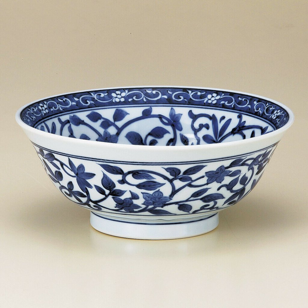 日本美濃燒藍唐草瓦碗19CM (日本製)