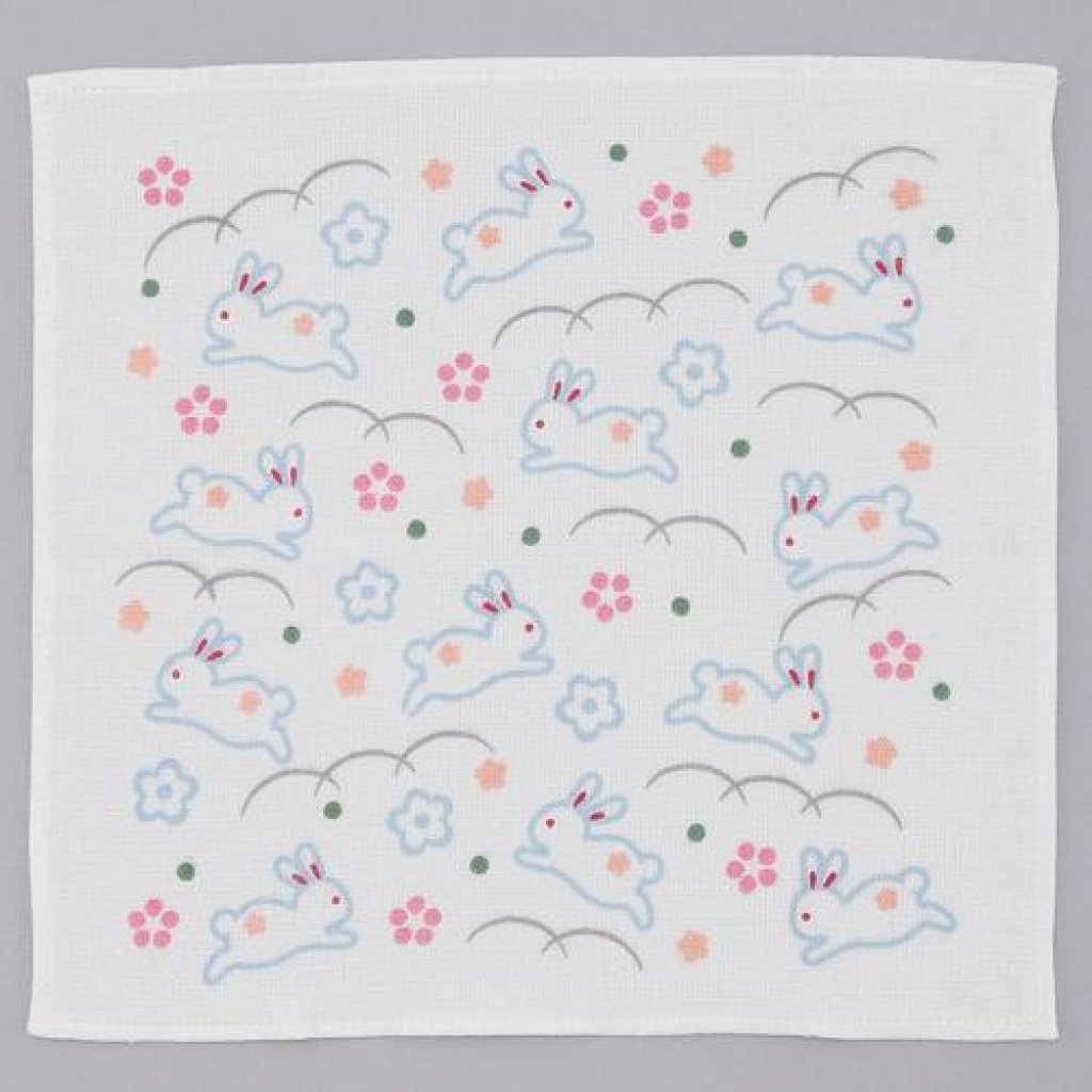 日式紗布方巾 (藍色玉兔) 25x25 (日本製)