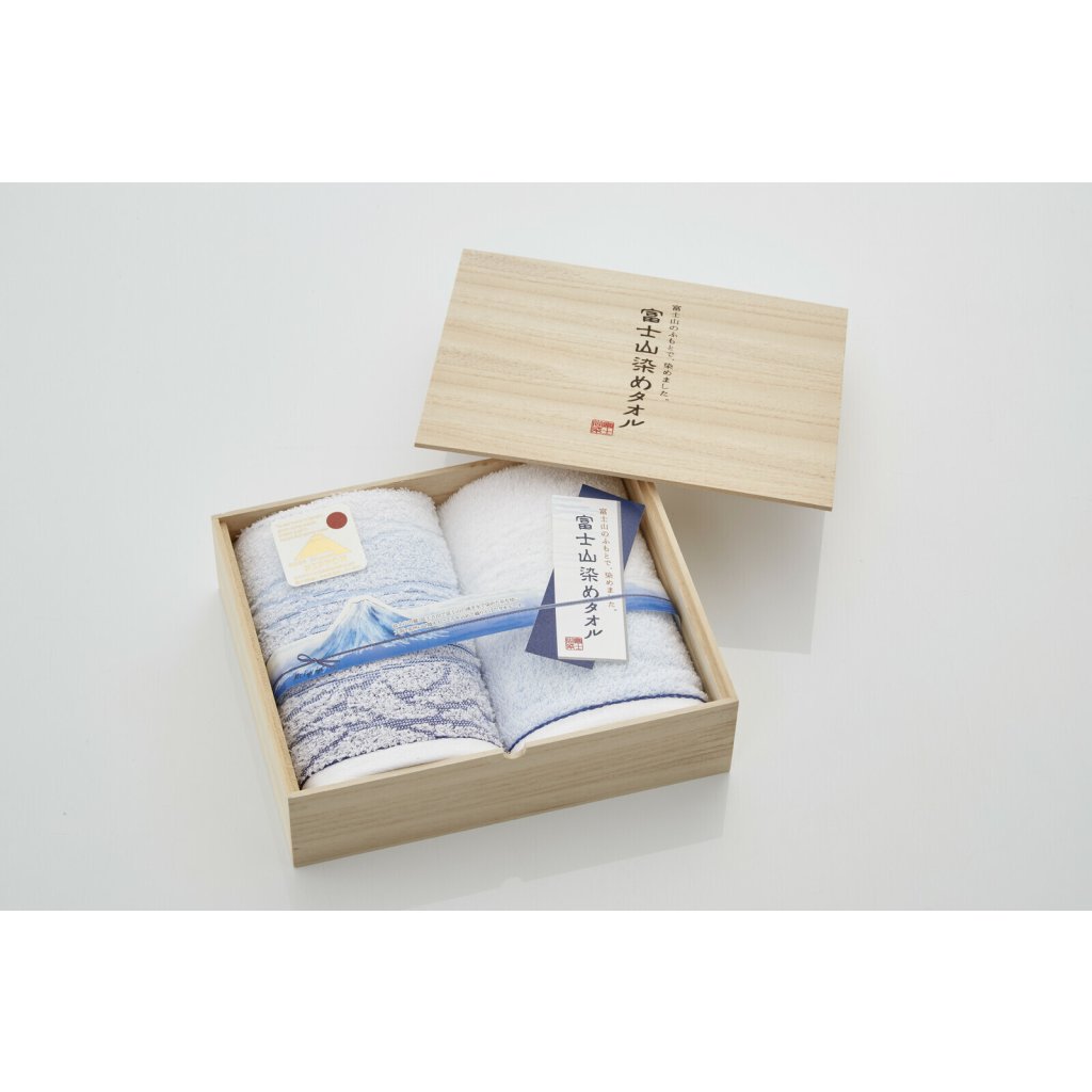 日本富士山染め豪華木盒毛巾套裝 (大浴巾+長毛巾) (日本製)
