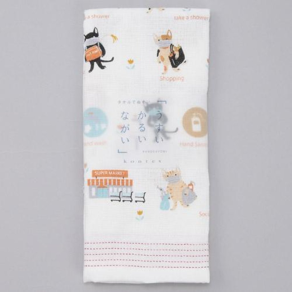 日式多功能快速乾燥長毛巾 (口罩貓貓) 33x100 (日本製)