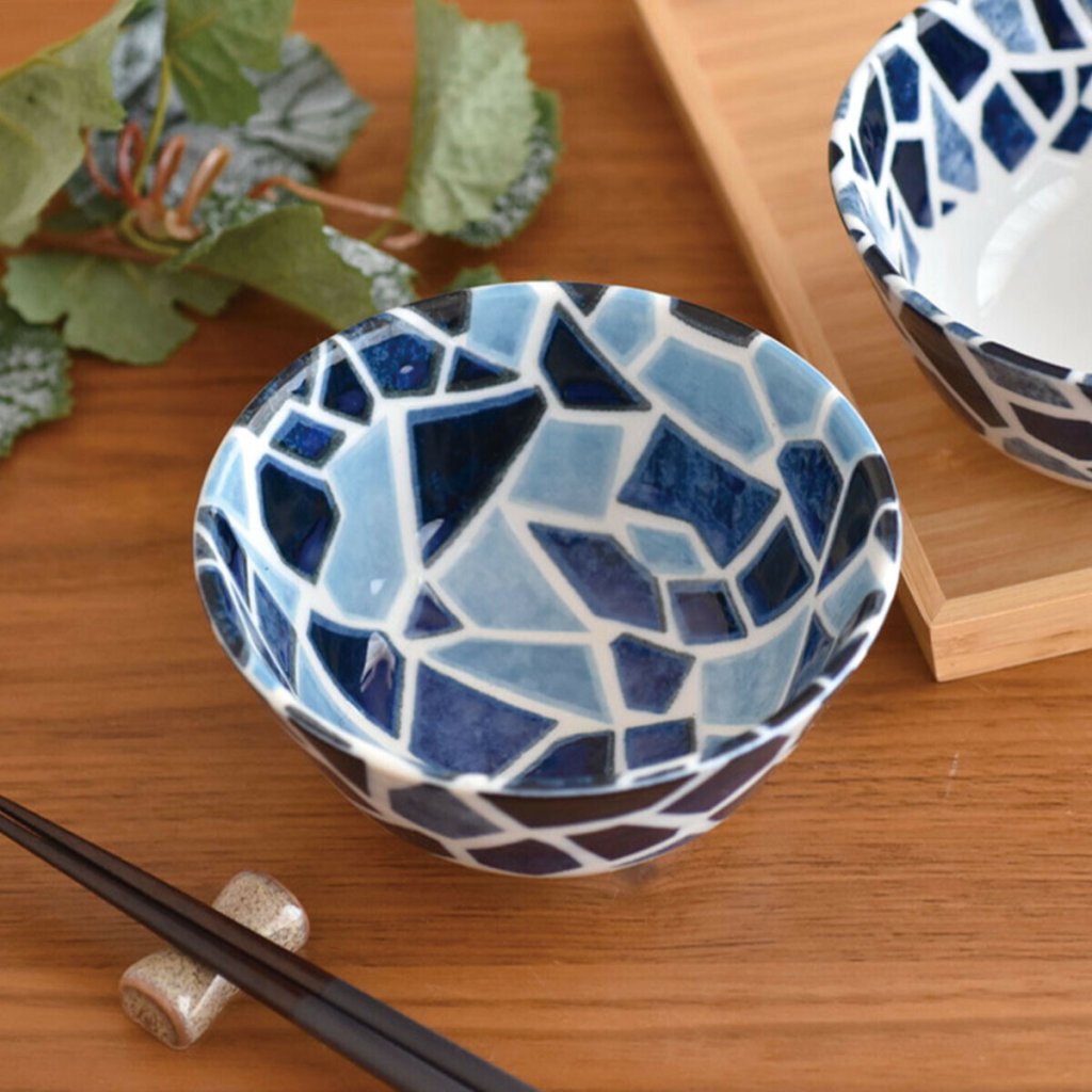 日本美濃燒海洋瓷磚花瓦碗 12CM (日本製)