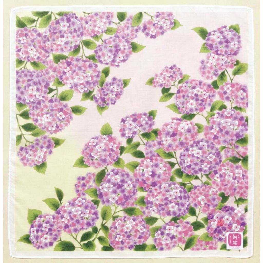 日本友禪刺繍紫陽花紗布方巾 (粉黃) 45x45 (日本製)