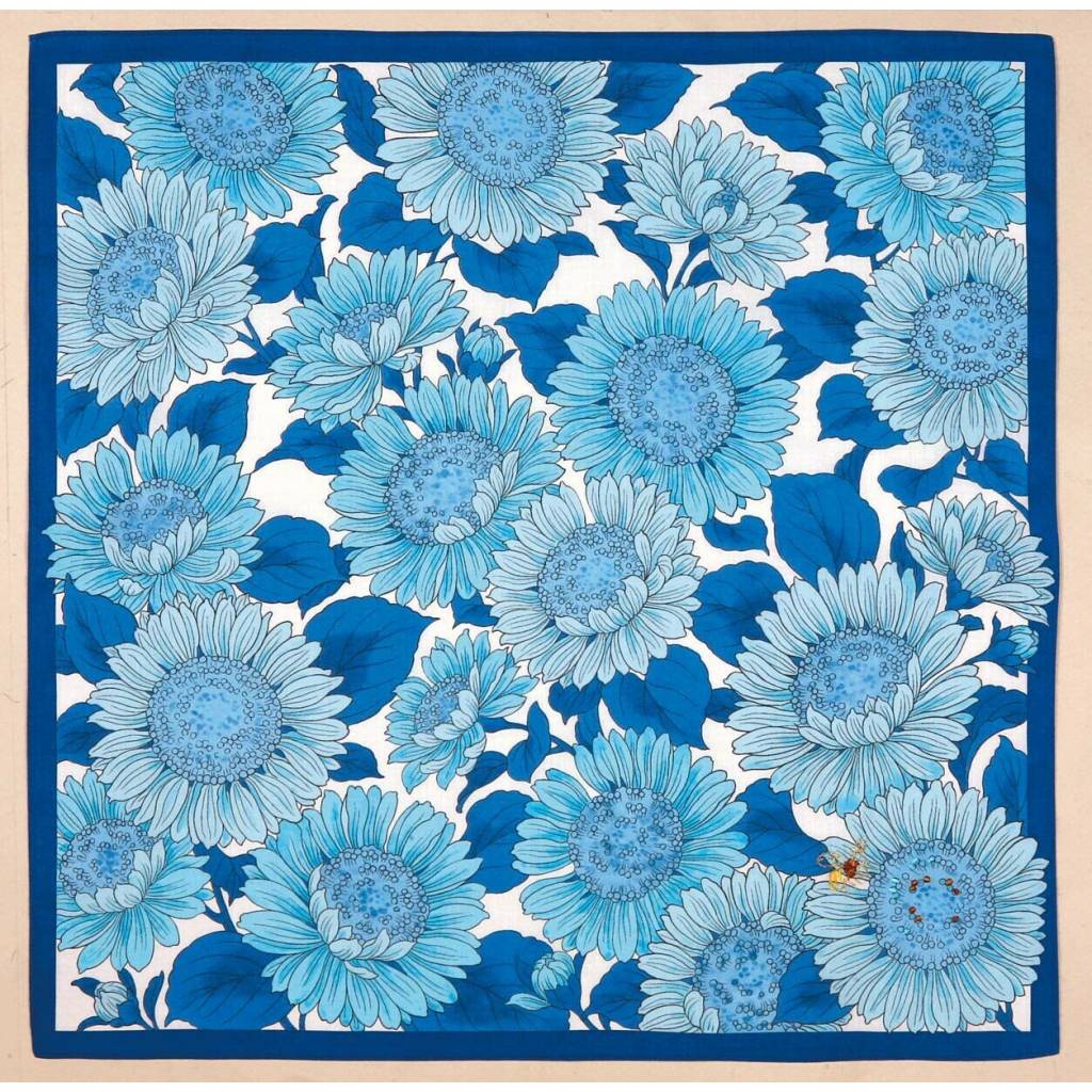 日本en.gawa刺繍向日葵花紗布方巾 (粉藍) 45x45 (日本製)