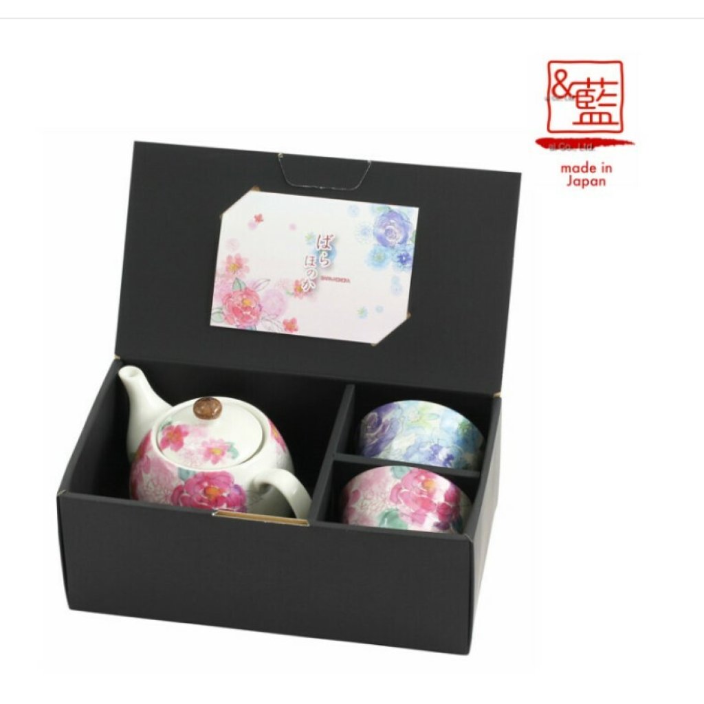 日本美濃燒茶壺套裝(玫瑰淡花) (日本製)