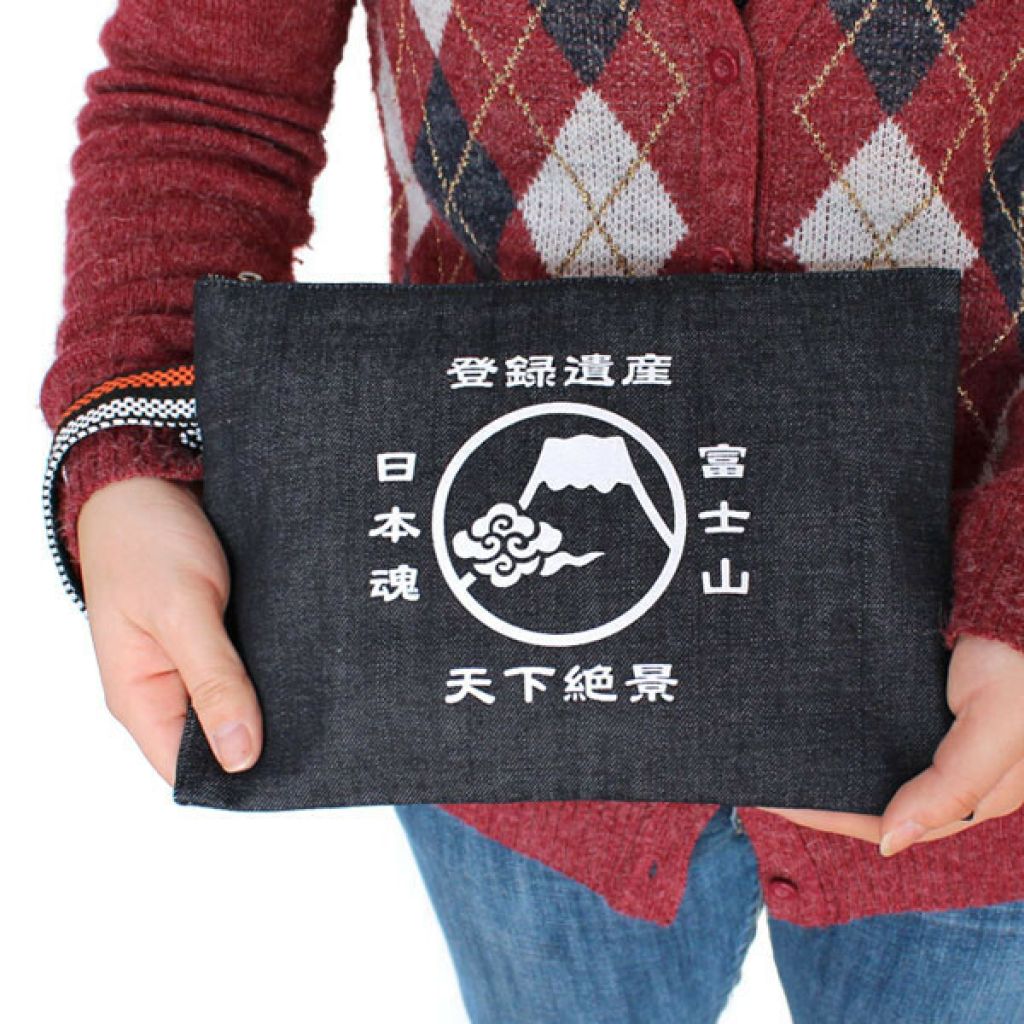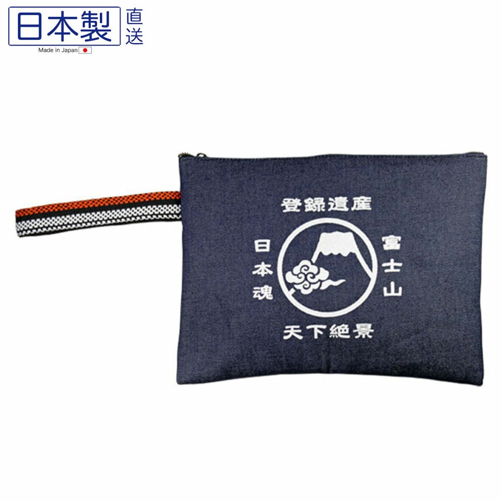 日本倉敷牛仔復古手提拉鏈袋(大) (富士山) (日本製)