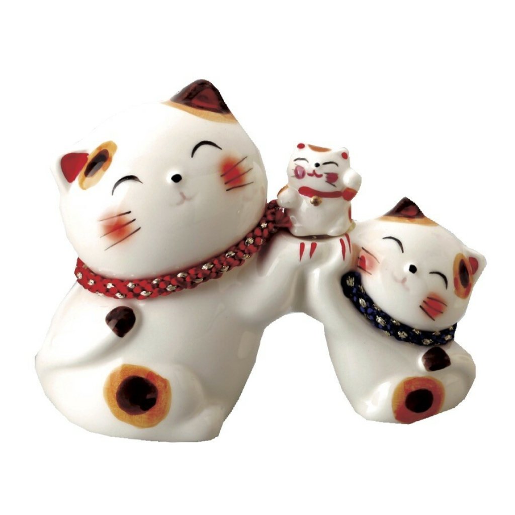 日式陶瓷幸福親子猫擺設 (日本製)