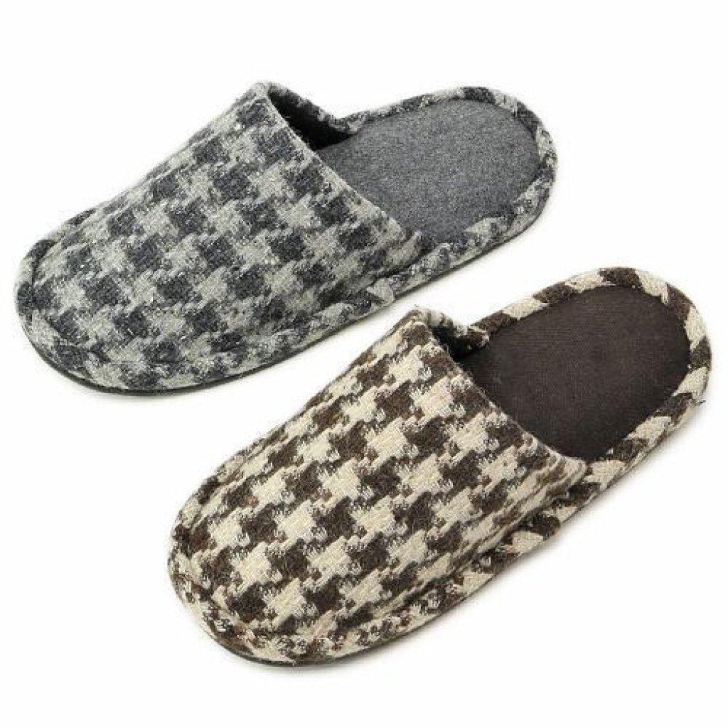 日式千鳥格居家拖鞋 (棕色) (日本製)