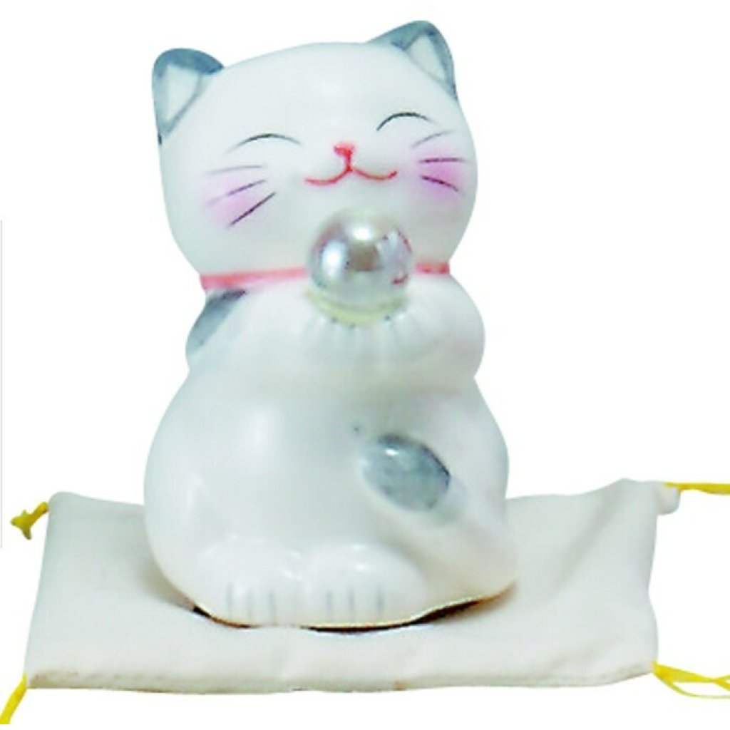 日式陶瓷風水幸運快樂貓 (白) (日本製)