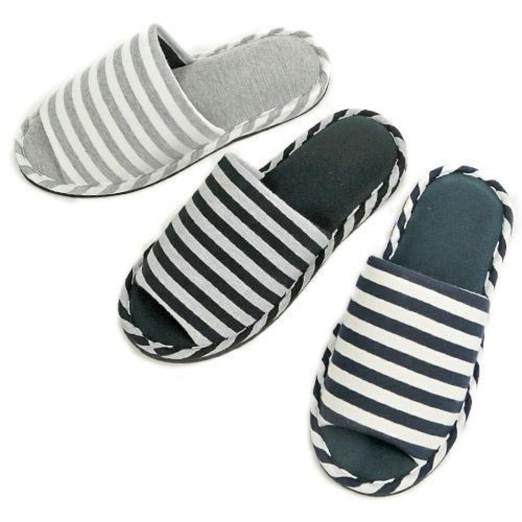 日式橫條紋居家拖鞋 (灰色) (日本製)
