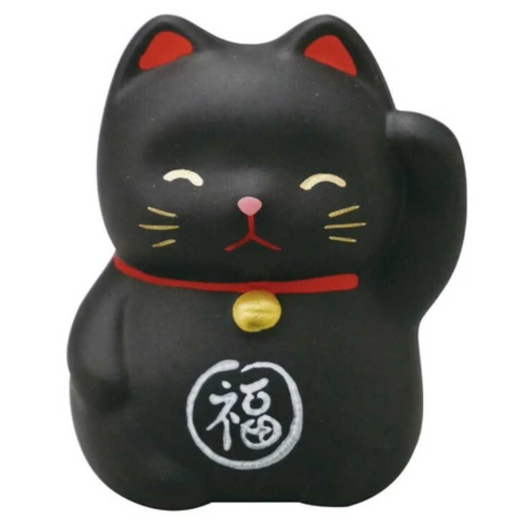 日式迷你陶瓷風水招財貓 (黑色) (日本製)