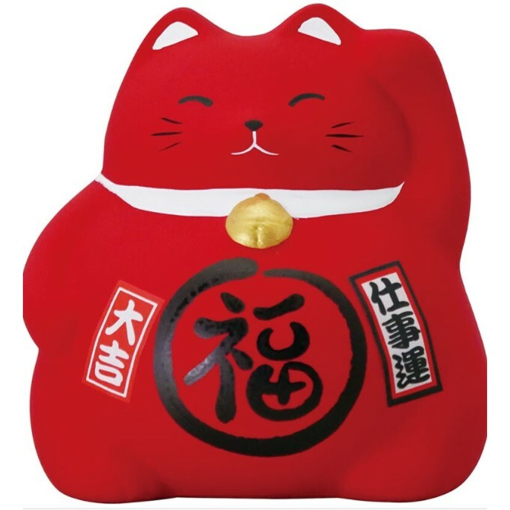 日式陶瓷風水招財貓 (紅色) (日本製)