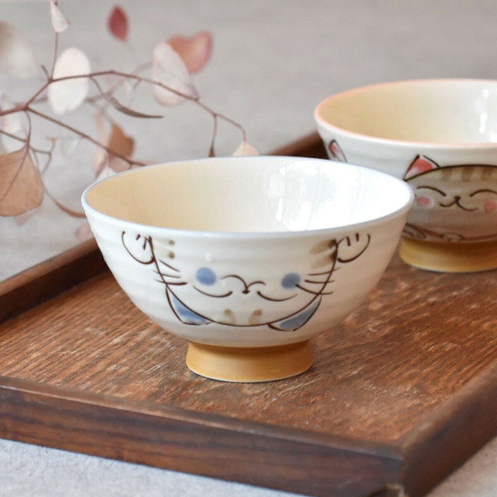 日本美濃燒水晶猫瓦碗(粉藍) 11CM (日本製)