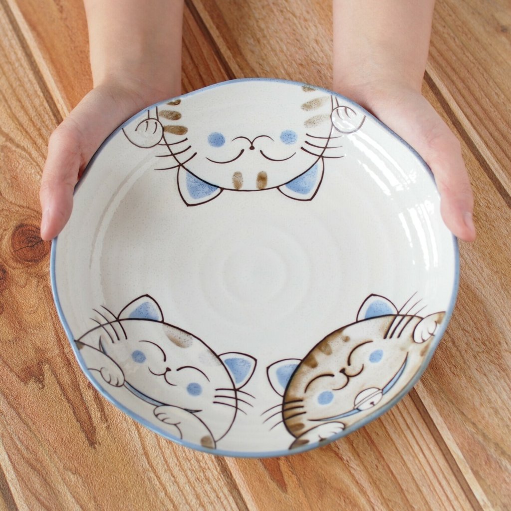 日本美濃燒水晶貓貓瓦碟(粉紅) 23CM (日本製)