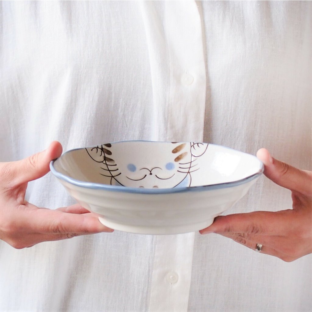 日本美濃燒水晶貓貓瓦碟(粉藍) 16CM (日本製)