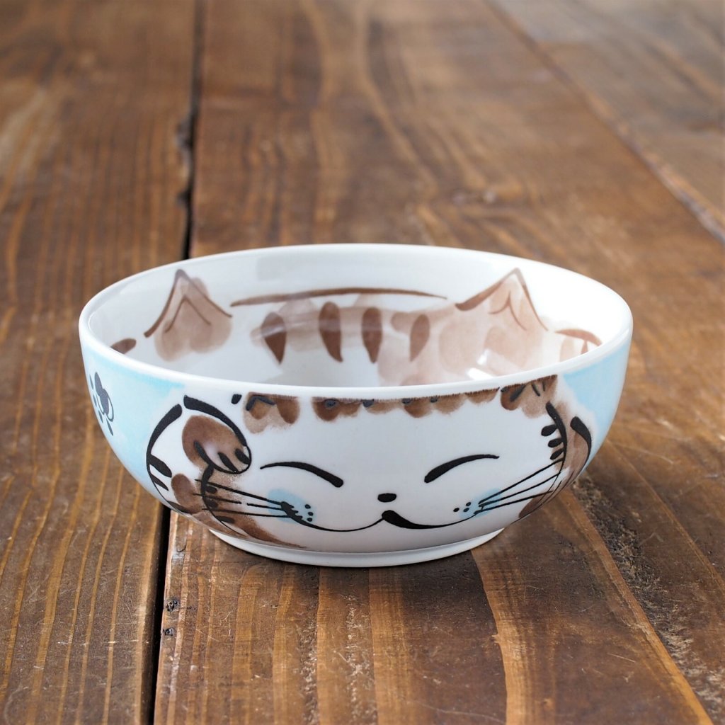 日本美濃焼招福貓瓦碗(粉藍) 13CM (日本製)