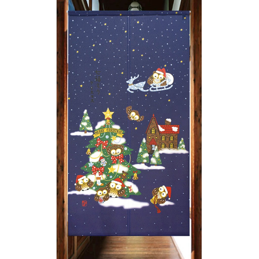 日式和風門簾 85x150 (聖誕貓頭鷹) (日本製)