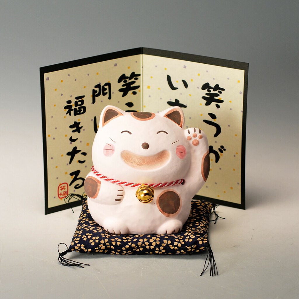 日本萬古燒陶器招福貓仔擺設 (日本製)