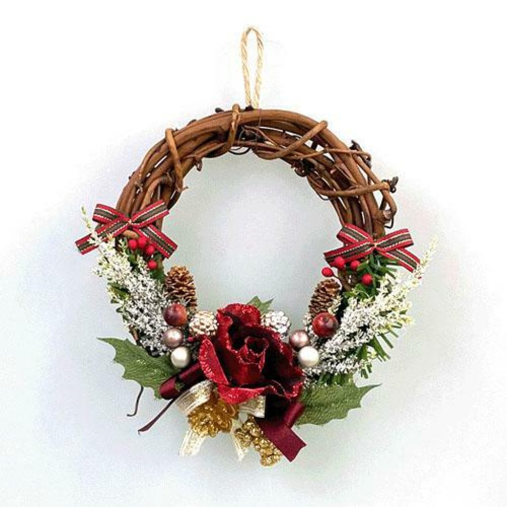 日式玫瑰花環聖誕擺設(桃紅) (日本製)