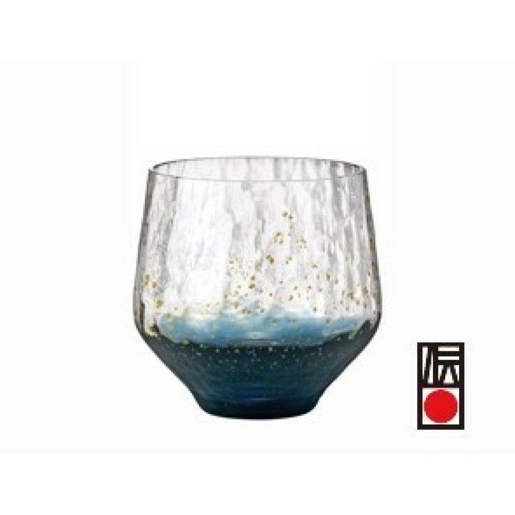 日本江戸硝子八千代窯金箔清酒杯(藍) (日本製)