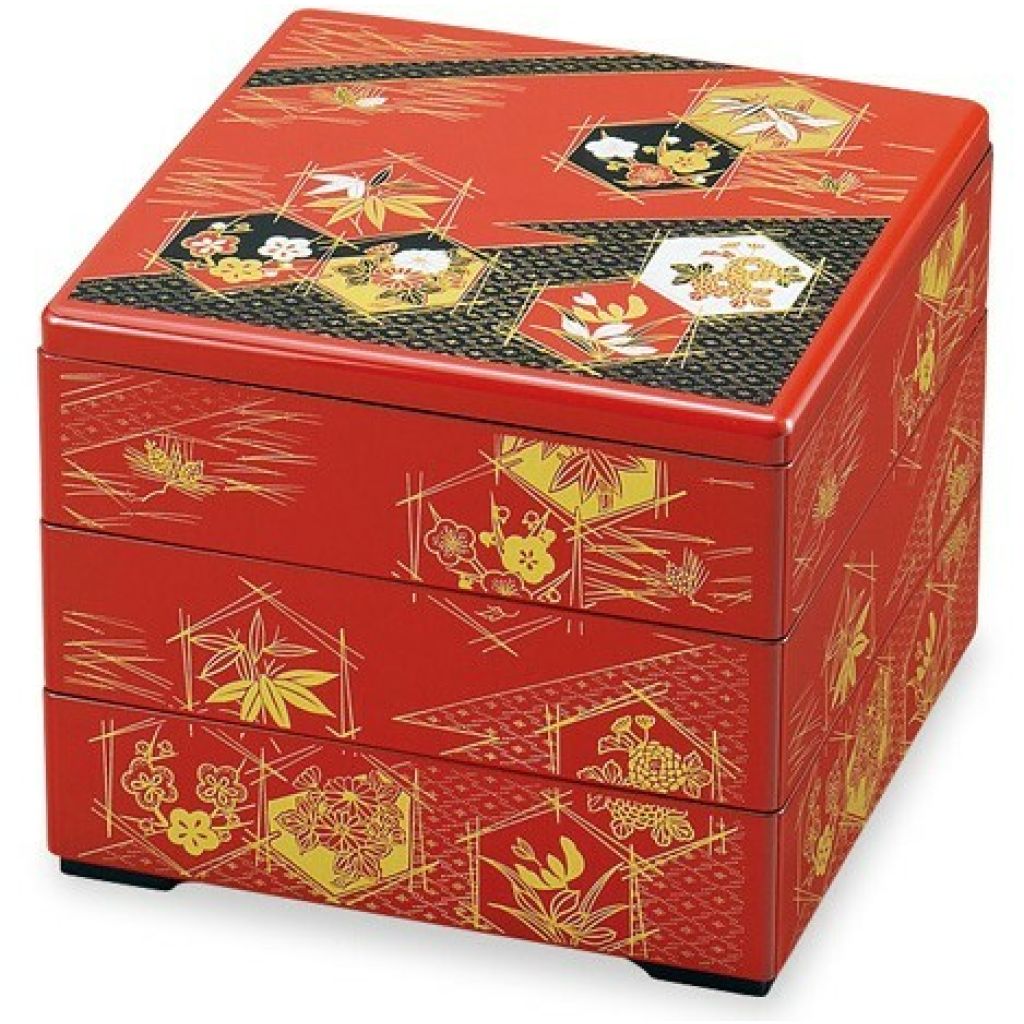 日式日の出鶴三段重盒(赤) (日本製)