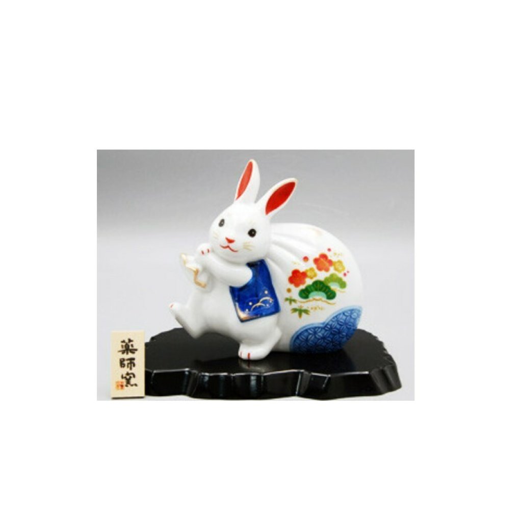 日本陶瓷染錦招福財寶運兔仔擺設 (日本製)