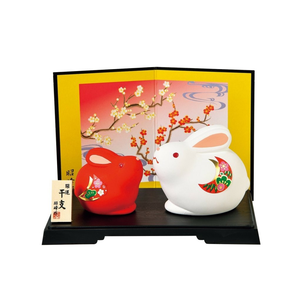 日本陶瓷開運紅白親子兔仔擺設 (日本製)