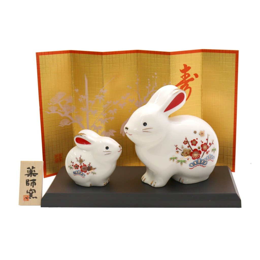 日本陶瓷白祥招福松竹梅親子兔仔擺設 (日本製)