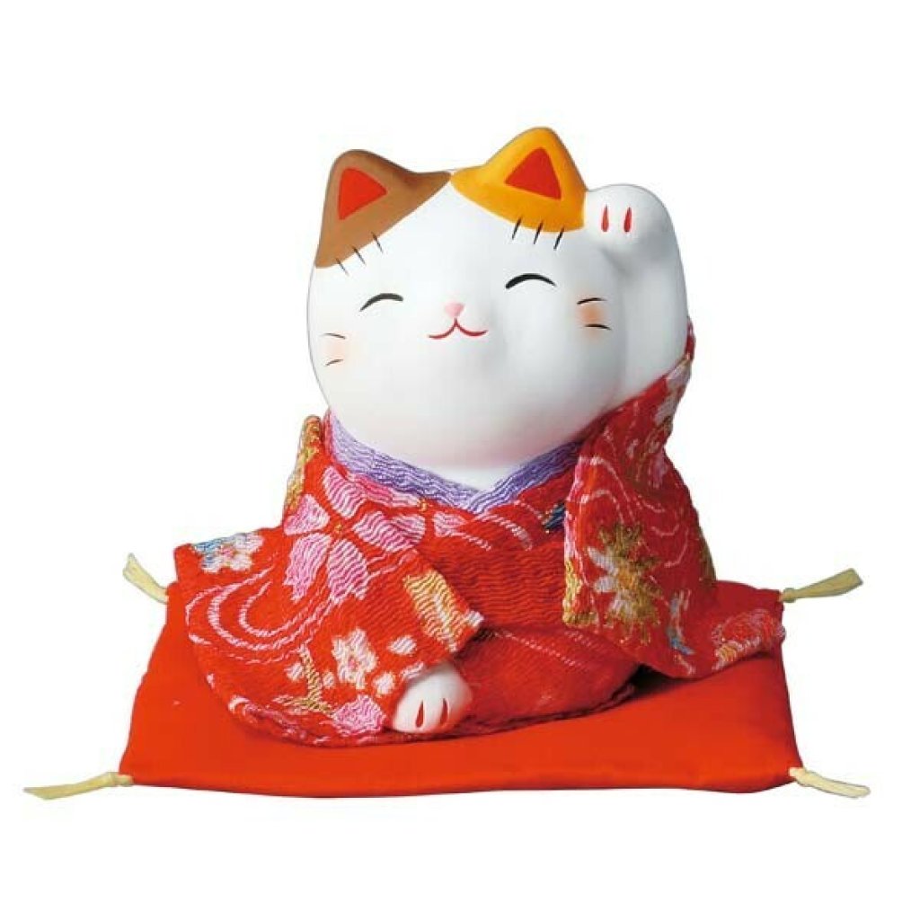 日式陶瓷和服招福猫 (紅色左手) (日本製)