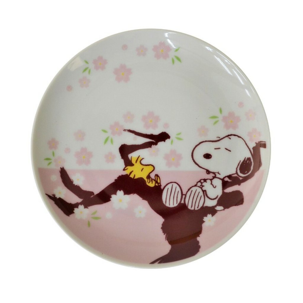 日式陶器SNOOPY櫻花瓦碟16CM (白色) (日本製)