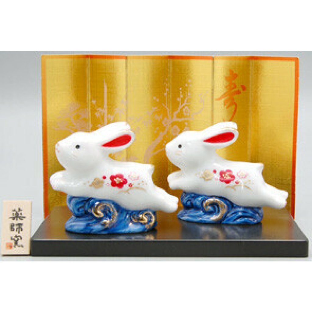 日本陶瓷染錦招福兔仔擺設(雙人) (日本製)