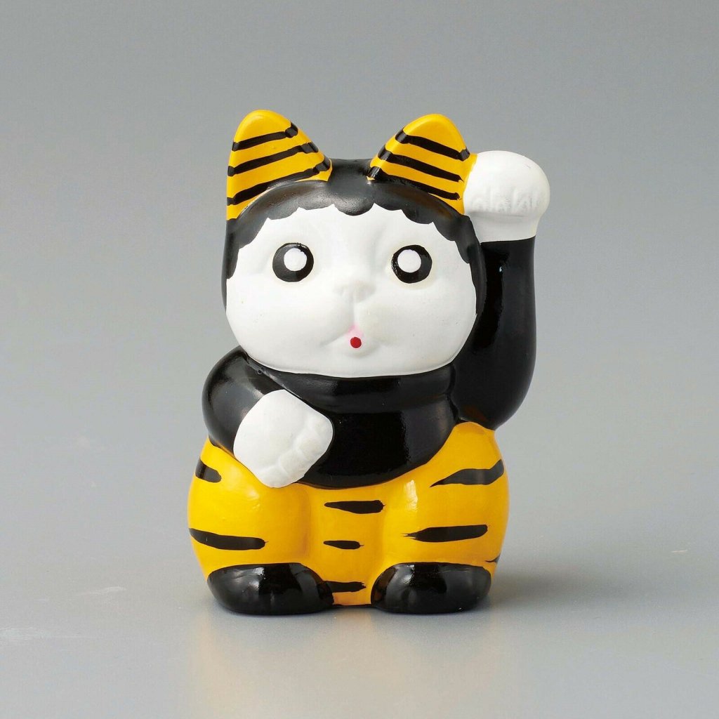 日式陶瓷職人の手書招財貓擺設(黑) (日本製)