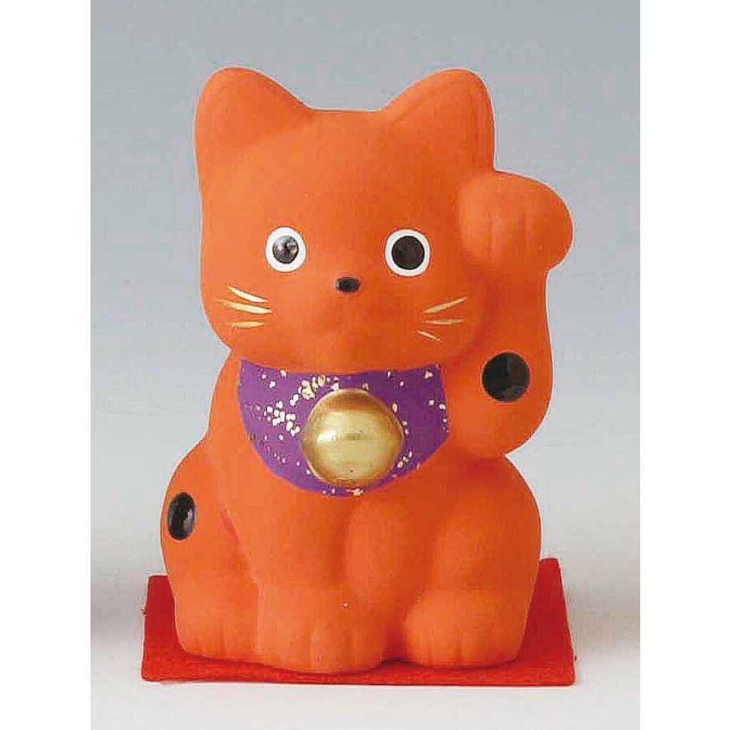 日式陶瓷幸福を招福猫 (大)(赤色) (日本製)